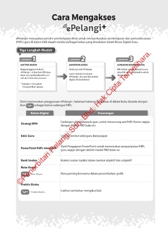 Demi memesrakan penggunaan ePelangi+, halaman-halaman berkaitan di dalam buku ditanda dengan