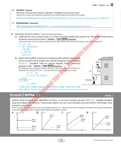 Nilai pecutan graviti adalah 9.81 m s / The value of the gravitational acceleration is 9.81 m s –2