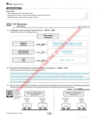 2. Nyatakan Prinsip Keabadian momentum dalam perlanggaran. SP 2.5.2 TP1
