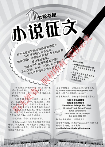 请上Facebook的七彩书屋网站了解征文 若有任何疑问,欢迎于Facebook上的七彩书屋