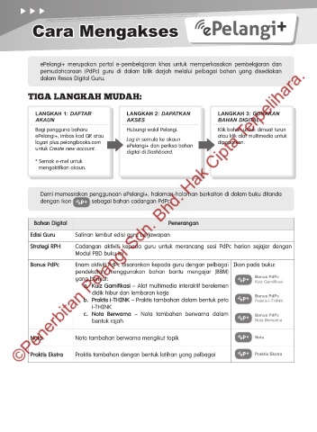 Demi memesrakan penggunaan ePelangi+, halaman-halaman berkaitan di dalam buku ditanda