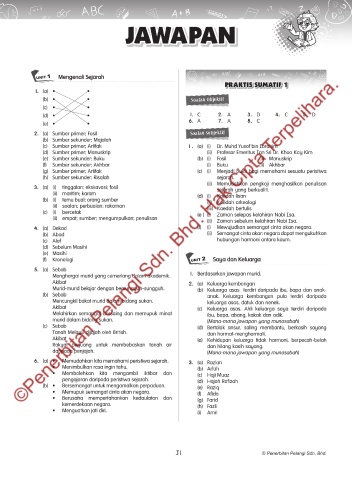 JAWAPAN Sejarah Tahun 4 Jawapan