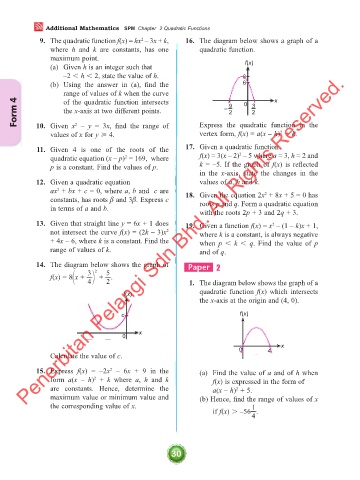 Form 4 the x-axis at two different points. 17. Given a quadratic function Reserved.
