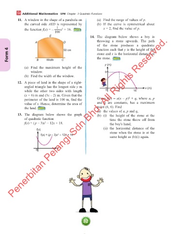 11. A window in the shape of a parabola on (a) Find the range of values of p.
