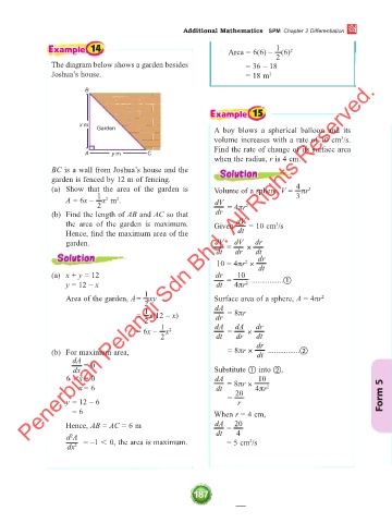 Area of the garden, A = xy Surface area of a sphere, A = 4πr 2