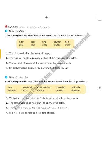Read and replace the word ‘walked’ the correct words from the list provided.