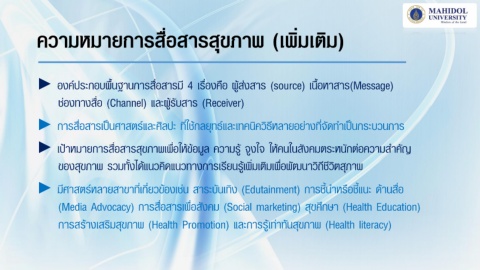 ความหมายการสื่อสารสุขภาพ (เพิ่มเติม)