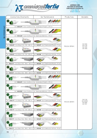 Art. 1450365F - Cavo Base 5 Vie - DIN - 300 cm Art. 1445037F - Set 5 Terminazioni Pinzetta - 70 cm DS 7100