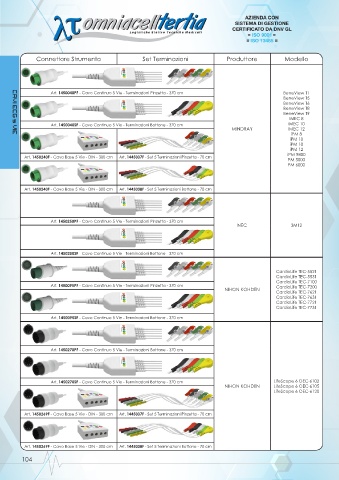 Art. 1450240F - Cavo Base 5 Vie - DIN - 300 cm Art. 1445037F - Set 5 Terminazioni Pinzetta - 70 cm