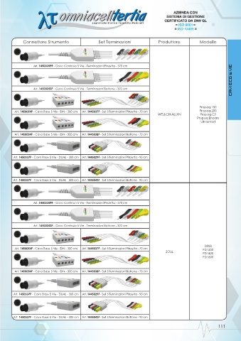 Art. 1450054F - Cavo Base 5 Vie - DIN - 300 cm Art. 1445037F - Set 5 Terminazioni Pinzetta - 70 cm Propaq 200