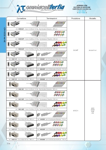 Art. 1450115F - Cavo Base 10 Vie - 180 cm Art. 1445058PF - Set 10 Terminazioni Pinzetta - 110 cm