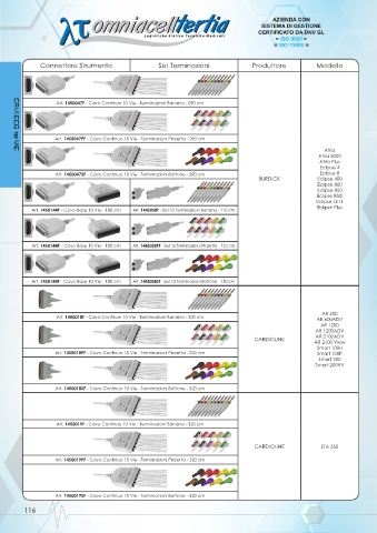 Art. 1450144F - Cavo Base 10 Vie - 180 cm Art. 1445058PF - Set 10 Terminazioni Pinzetta - 110 cm