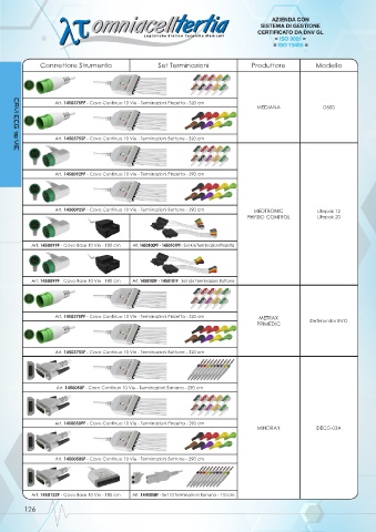 Art. 1450099F - Cavo Base 10 Vie - 180 cm Art. 1450100PF - 1450101PF - Set 4/6 Terminazioni Pinzetta
