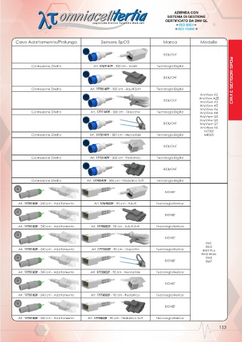 Art. 1775102F - 240 cm - Adattamento Art. 1773022F - 90 cm - Pediatrico Tecnologia Nellcor