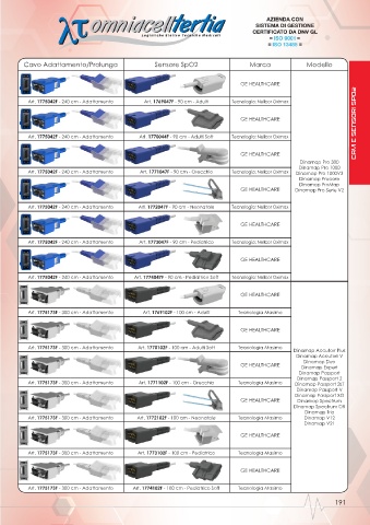 Art. 1775042F - 240 cm - Adattamento Art. 1773047F - 90 cm - Pediatrico Tecnologia: Nellcor Oximax