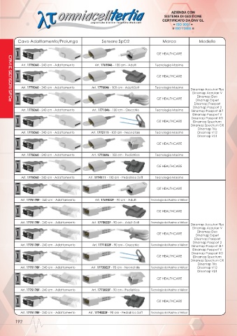 Art. 1775060 - 240 cm - Adattamento Art. 1771046 - 100 cm - Orecchio Tecnologia Masimo Dinamap Passport 2LT