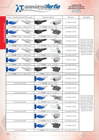 Art. 1775090F - 240 cm - Adattamento Art. 1771102F - 100 cm - Orecchio Tecnologia Masimo Marquette Dinamap