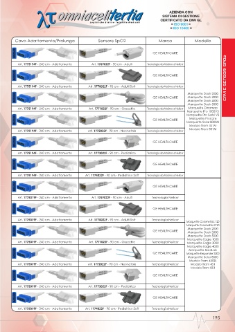 Art. 1775019F - 240 cm - Adattamento Art. 1773022F - 90 cm - Pediatrico Tecnologia Nellcor