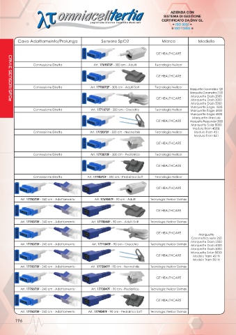 Art. 1775073F - 240 cm - Adattamento Art. 1773047F - 90 cm - Pediatrico Tecnologia: Nellcor Oximax