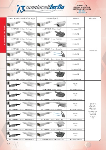 Art. 1775018F - 240 cm - Adattamento Art. 1773022F - 90 cm - Pediatrico Tecnologia Nellcor