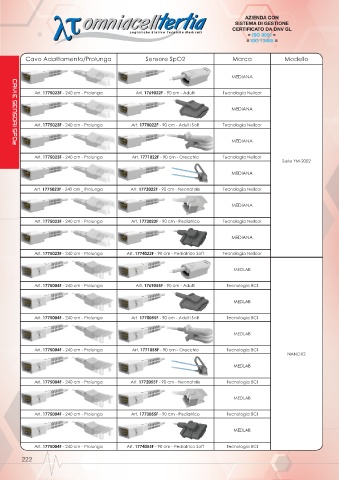Art. 1775023F - 240 cm - Prolunga Art. 1769022F - 90 cm - Adulti Tecnologia Nellcor