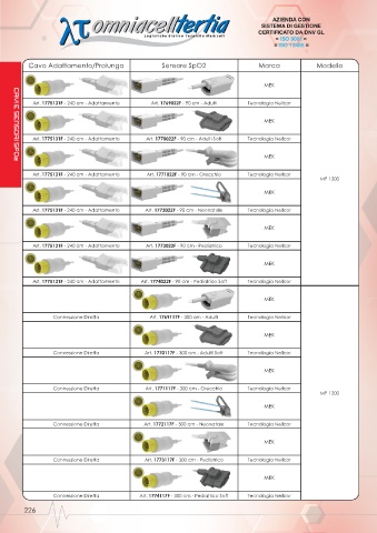 Art. 1775131F - 240 cm - Adattamento Art. 1769022F - 90 cm - Adulti Tecnologia Nellcor