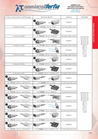 Art. 1775196F - 240 cm - Adattamento Art. 1773022F - 90 cm - Pediatrico Tecnologia da Nellcor Oximax a Nellcor