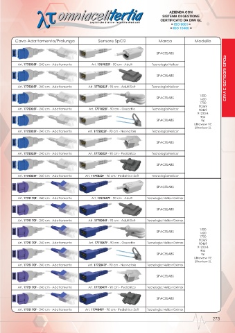 Art. 1775170F - 240 cm - Adattamento Art. 1773047F - 90 cm - Pediatrico Tecnologia: Nellcor Oximax