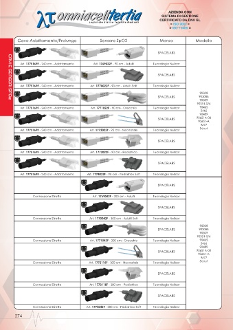 Art. 1775169F - 240 cm - Adattamento Art. 1773022F - 90 cm - Pediatrico Tecnologia Nellcor