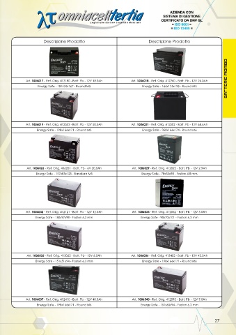 Art. 1006032 - Ref. Orig. 412121 - Batt. Pb - 12V 12.0Ah Art. 1006033 - Ref. Orig. 412052 - Batt. Pb - 12V 5.0Ah