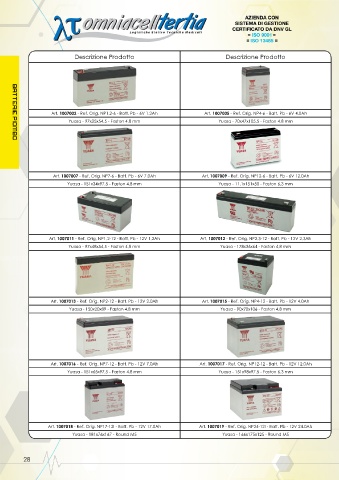 Art. 1007018 - Ref. Orig. NP17-12I - Batt. Pb - 12V 17.0Ah Art. 1007019 - Ref. Orig. NP24-12I - Batt. Pb - 12V 24.0Ah