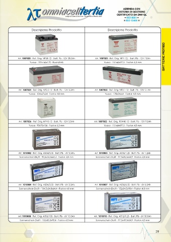 Art. 1007020 - Ref. Orig. NP38-12I - Batt. Pb - 12V 38.0Ah Art. 1007023 - Ref. Orig. NP7-12L - Batt. Pb - 12V 7.0Ah