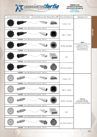 Connettore Lato Macchina Connettore Lato Trasduttore IBP Tipo Connettore Apparecchi