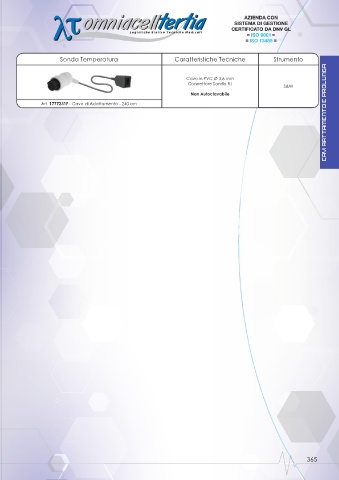 Sonda Temperatura Caratteristiche Tecniche Strumento CAVI AATTAMENTO- E /PROLUNGA Cavo in PVC Ø 3,6 mm Connettore Sonda RJ S&W Non Autoclavabile Art. 1777231F - Cavo di Adattamento - 240 cm 365
