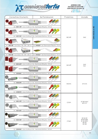 Art. 1450158F - Cavo Base 3 Vie - DIN - 300 cm Art. 1445035F - Set 3 Terminazioni Pinzetta - 70 cm