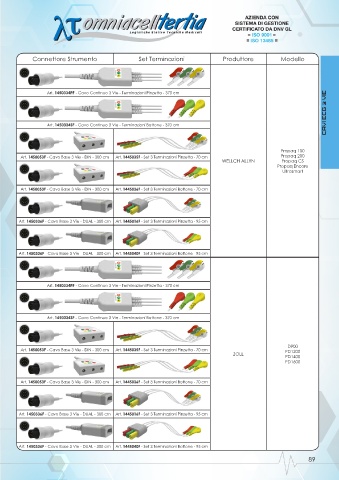 Art. 1450053F - Cavo Base 3 Vie - DIN - 300 cm Art. 1445035F - Set 3 Terminazioni Pinzetta - 70 cm Propaq 200