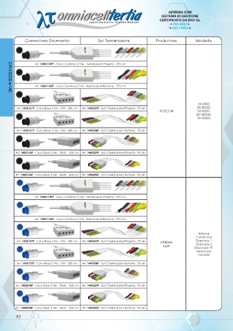 Art. 1450159F - Cavo Base 5 Vie - DIN - 300 cm Art. 1445037F - Set 5 Terminazioni Pinzetta - 70 cm ARTEMA Diascope 1