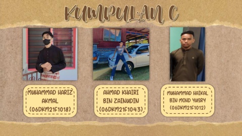 MUHAMMAD HARIZ AHMAD KHAIRI MUHAMMAD HAIKAL AKMAL BIN ZAINUDIN BIN MOHD YUSRY (06DKM21F1018) (06DKM21F1043) (06DKM21F1012)
