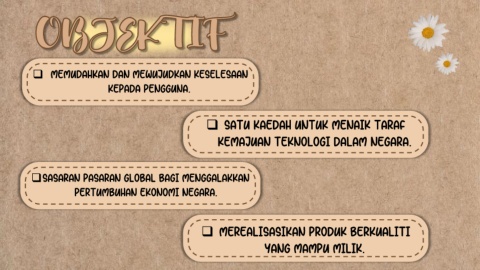 MEMUDAHKAN DAN MEWUJUDKAN KESELESAAN KEPADA PENGGUNA. SATU KAEDAH UNTUK MENAIK TARAF KEMAJUAN TEKNOLOGI DALAM NEGARA. SASARAN PASARAN GLOBAL BAGI MENGGALAKKAN PERTUMBUHAN EKONOMI NEGARA. MEREALISASIKAN PRODUK BERKUALITI YANG MAMPU MILIK.