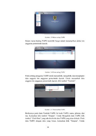 Dalam menu Setting TAPD memiliki fungsi untuk menampilkan daftar tim