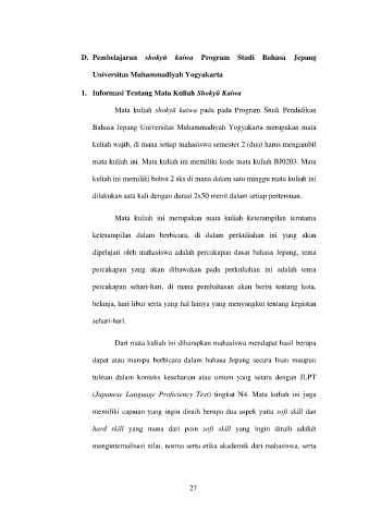 (Japanese Language Proficiency Test) tingkat N4. Mata kuliah ini juga