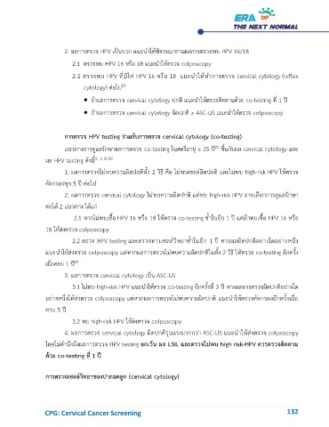 2. ผลการตรวจ HPV เป็นบวก แนะนำให้พิจารณาตามผลการตรวจพบ HPV 16/18