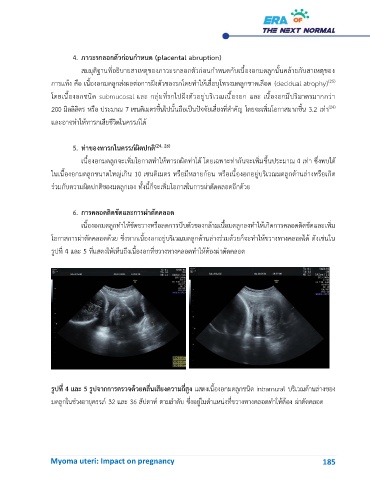 มดลูกในช่วงอายุครรภ์ 32 และ 36 สัปดาห์ ตามลำดับ ซึ่งอยู่ในตำแหน่งที่ขวางทางคลอดทำให้ตอง ผ่าตัดคลอด