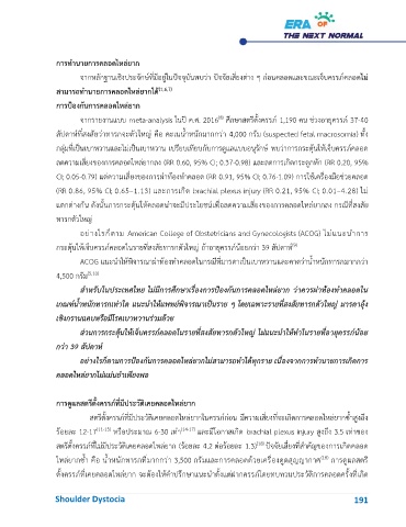 แตกต่างกัน ดังนั้นการกระตุ้นให้คลอดน่าจะมีประโยชน์เพื่อลดความเสี่ยงของการคลอดไหล่ยากลง กรณที่สงสย