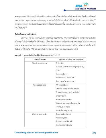 ตารางที่ 1 แสดงปัจจัยเสี่ยงที่ทำให้เกิดภาวะ PAS (4, 5, 12-16)
