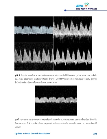 รูปที่ 2 Doppler waveforms ของ ductus venosus แสดงภาวะปกติที่มี a-wave (รูปบน) และภาวะทารกโตชา