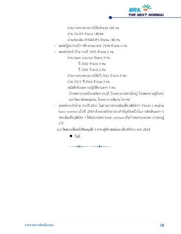 - แพทย์ประจำบ้าน จากปี 2561 ไม่ผ่านการประเมินเพื่อวุฒิบัตรฯ จำนวน 1 คนผ่าน