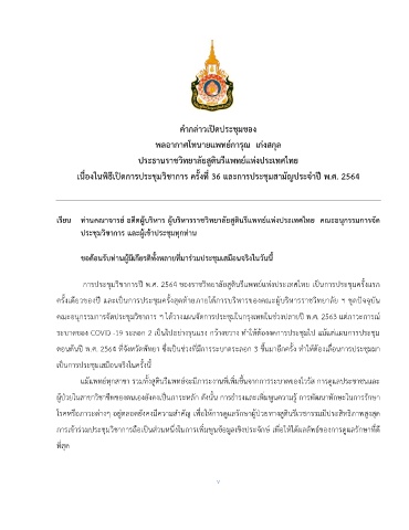 เนื่องในพธีเปิดการประชุมวิชาการ ครั้งท 36 และการประชุมสามัญประจำปี พ.ศ. 2564