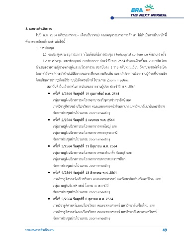 1.2 การประชุม Interhospital conference ประจำปี พ.ศ. 2564 กำหนดจัดครั้งละ 2 สถาบัน โดย