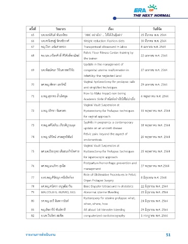 75 ผศ.นพ.ธีระยุทธ เต็มธนะกิจไพศาล Hysterectomy for Prolapse: techniques 25 พฤษภาคม พ.ศ. 2564